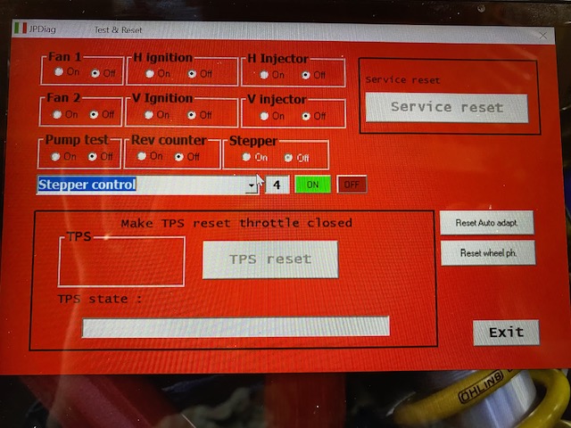 I have difficulty with cold start on the GT1000 and could the stepper motor be my issue? When I run the software, on-off appears in the boxes and also the red green buttons. Clarification please? In the box, that's the test, yes? Green-red is reprogramming the bike to have the stepper motor in a on or off state? Lastly, the number 4 appears. What does the 4 indicate? Thanks so much, stay cool. Your heat wave made headline news in the US.